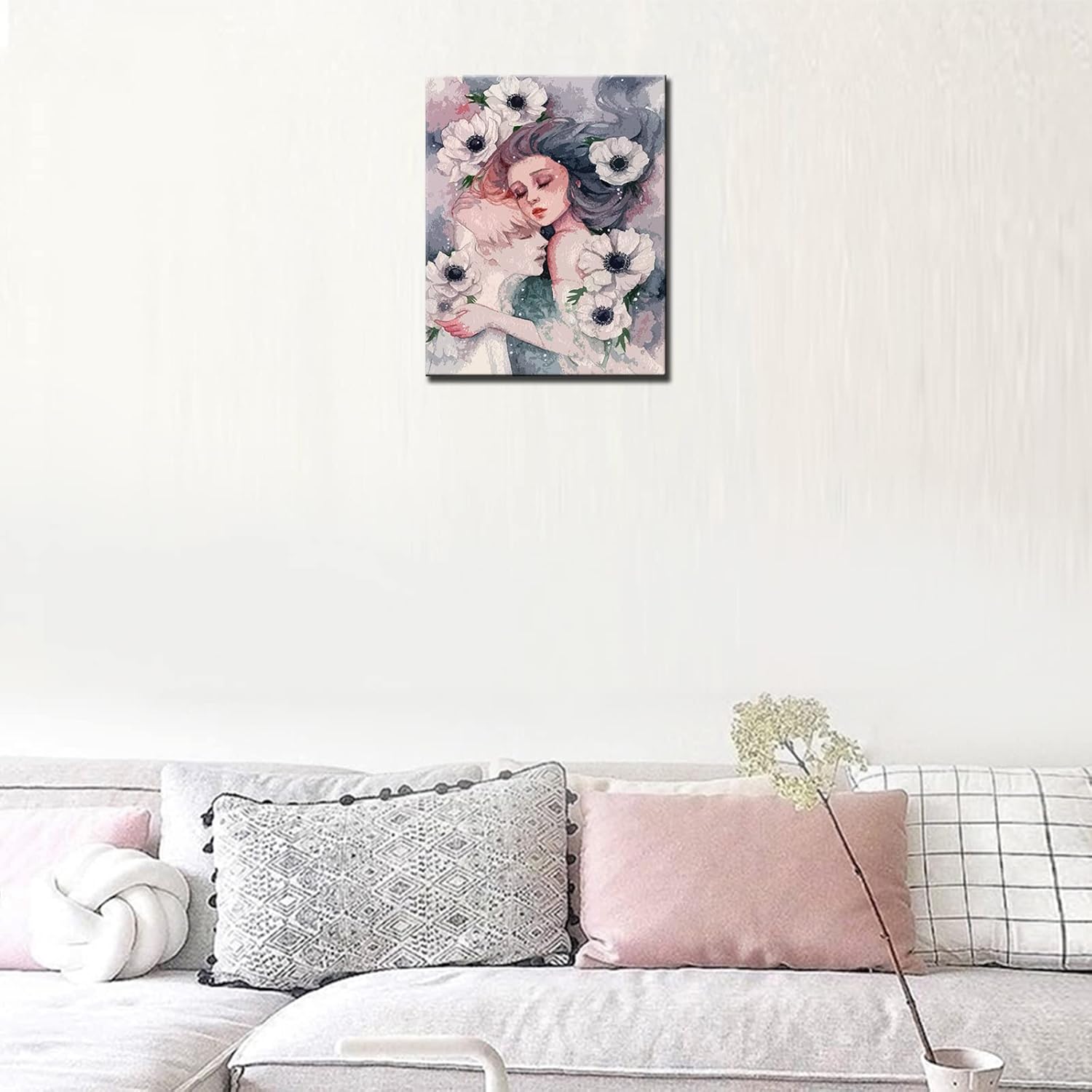 Tucocoo Paint by Number for Adults, Watercolor DIY Oil Painting Kits on Canvas with Brushes and Acrylic Pigment-Pretty Girl Hugs Boy Picture Gifts Arts Crafts for Home Decor 16x20inch(Frameless)