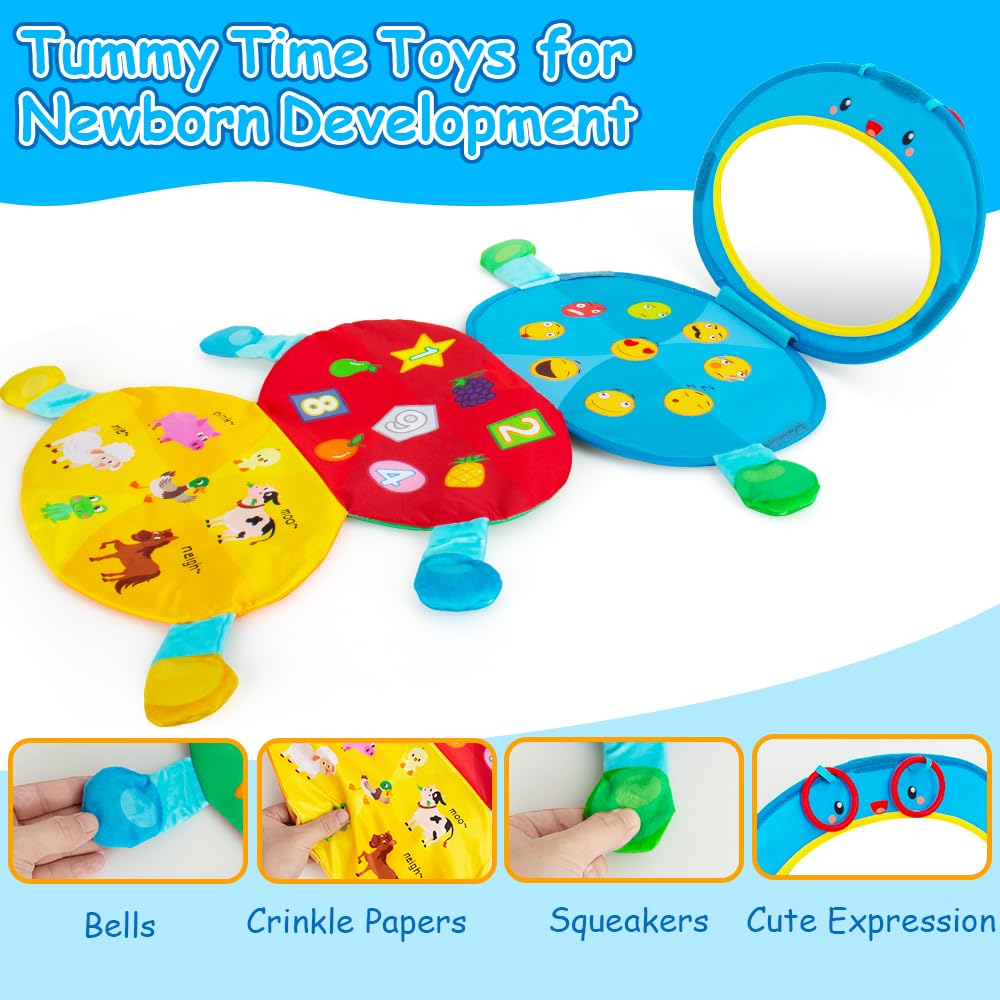 šŸ‘¶ć€CUTE CATERPILLAR SENSORY CRINKLE TOYS怑Enhance your baby’s sensory experience with our multifunctioanl crinkle toys.As newborns explore the toys with their little hands,they can feel the satisfying crunch and hear the gentle sound produced by the crinkle materials. Amazing baby toys 3-6 months with tummy time mirror,high contrast colors,crinkly textures, squeakers and bells provide visual,auditory and tactile stimulations,promoting baby’s overall development.