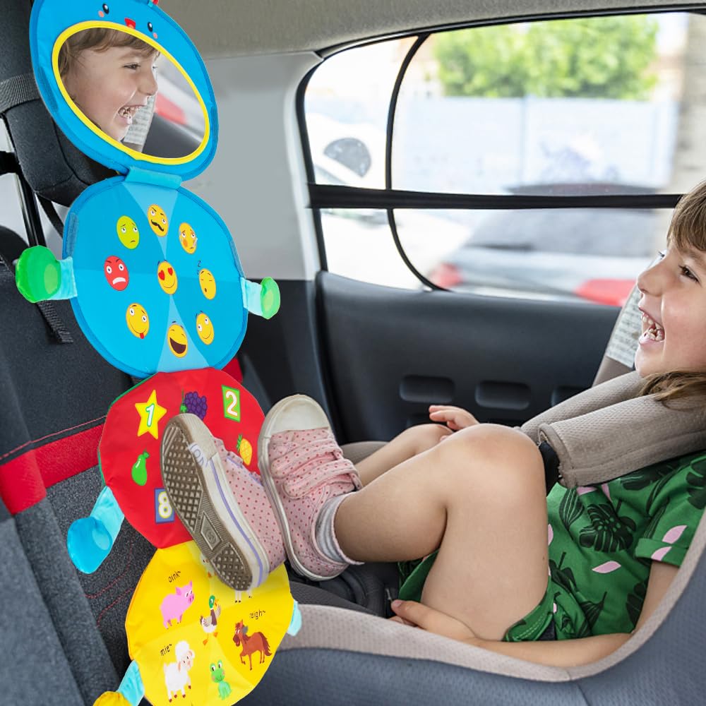 šŸ‘¶ć€PORTABLE & FOLDABLE & HANGABLE怑The sensory infant toys for tummt time is very durable and portable,it stands by the support stickers,and the hanging loop allows it to be hung on various places such as baby gym,cribs,strollers,cars,etc. Suitable for home use and travel use.NOTE: There is a protective film on the mirror, please remove it before using it to make the reflection clearer.