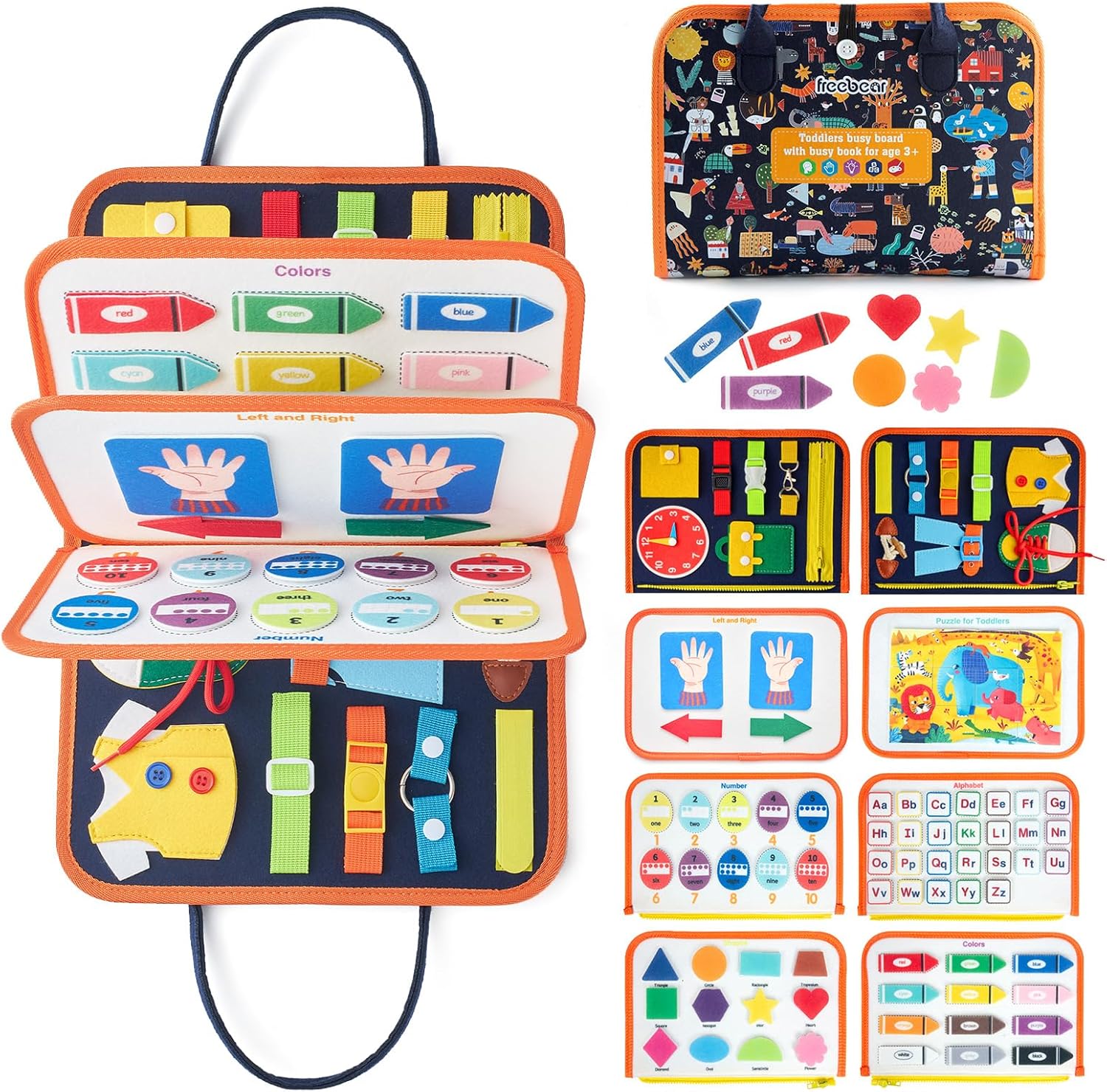 Freebear Busy Board Toddler Travel Toys Sensory Toys for Toddlers 1 2 3 4, Montessori Learning Toys for Toddlers Activities Board, Educational Toys for 3 4 Year Old Boys Girls Gift, Classic
