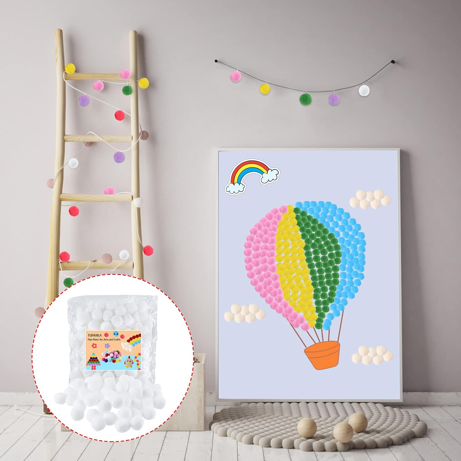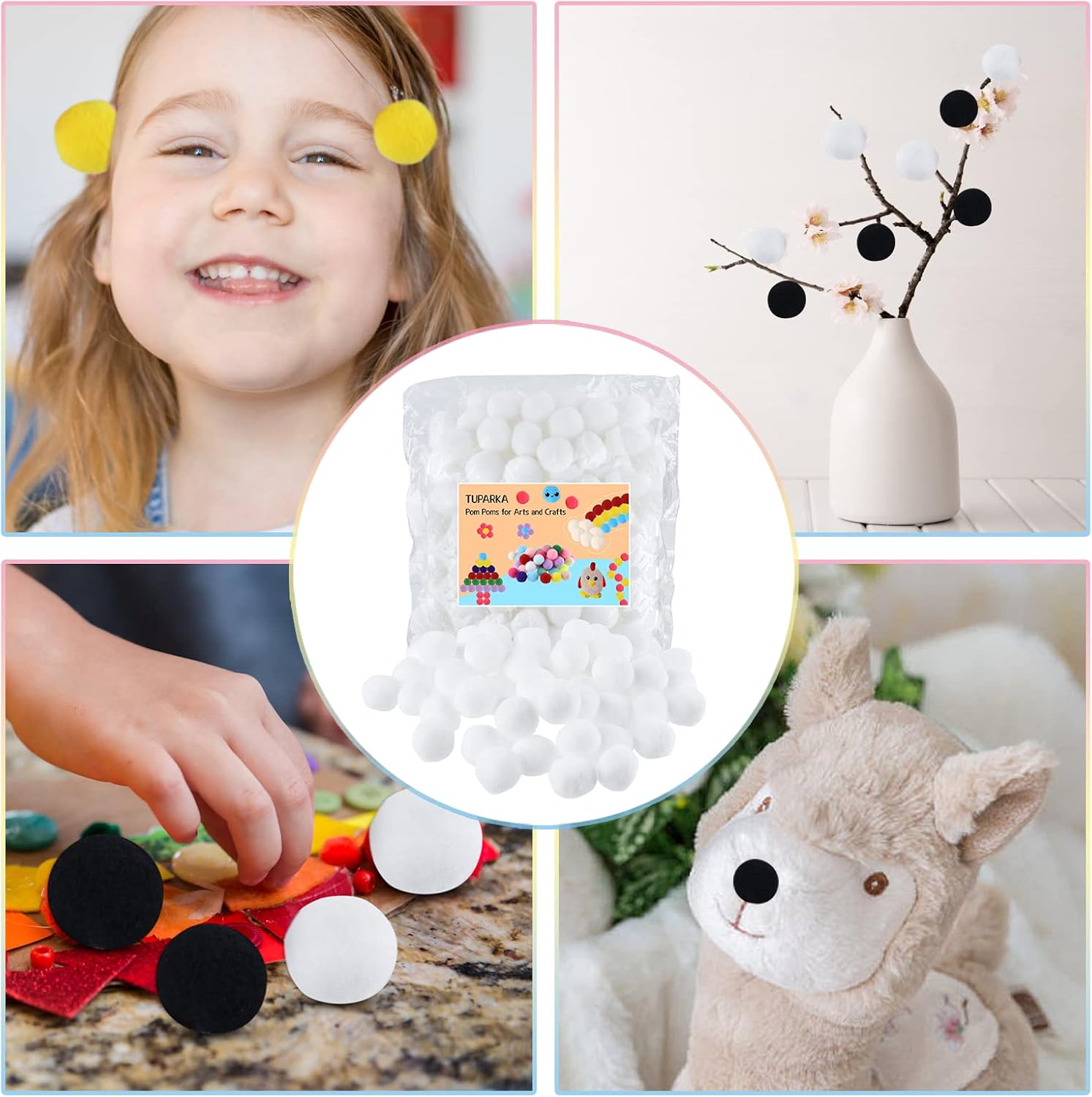 TUPARKA 100 Pcs Craft Pom Poms White Pompoms Balls 1 Inch Felt Balls for Art Crafts DIY Projects