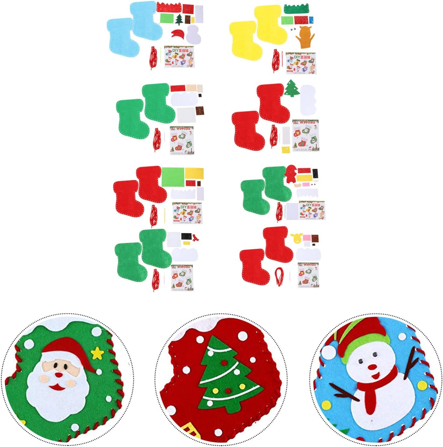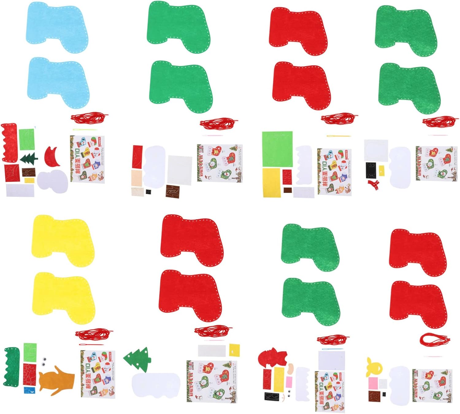 ULTNICE 8 Sets 3D Felt Xmas Stocking Ornament Set Christmas Stocking DIY Sewing Craft Kit for Christmas Party Hand Craft Supplies