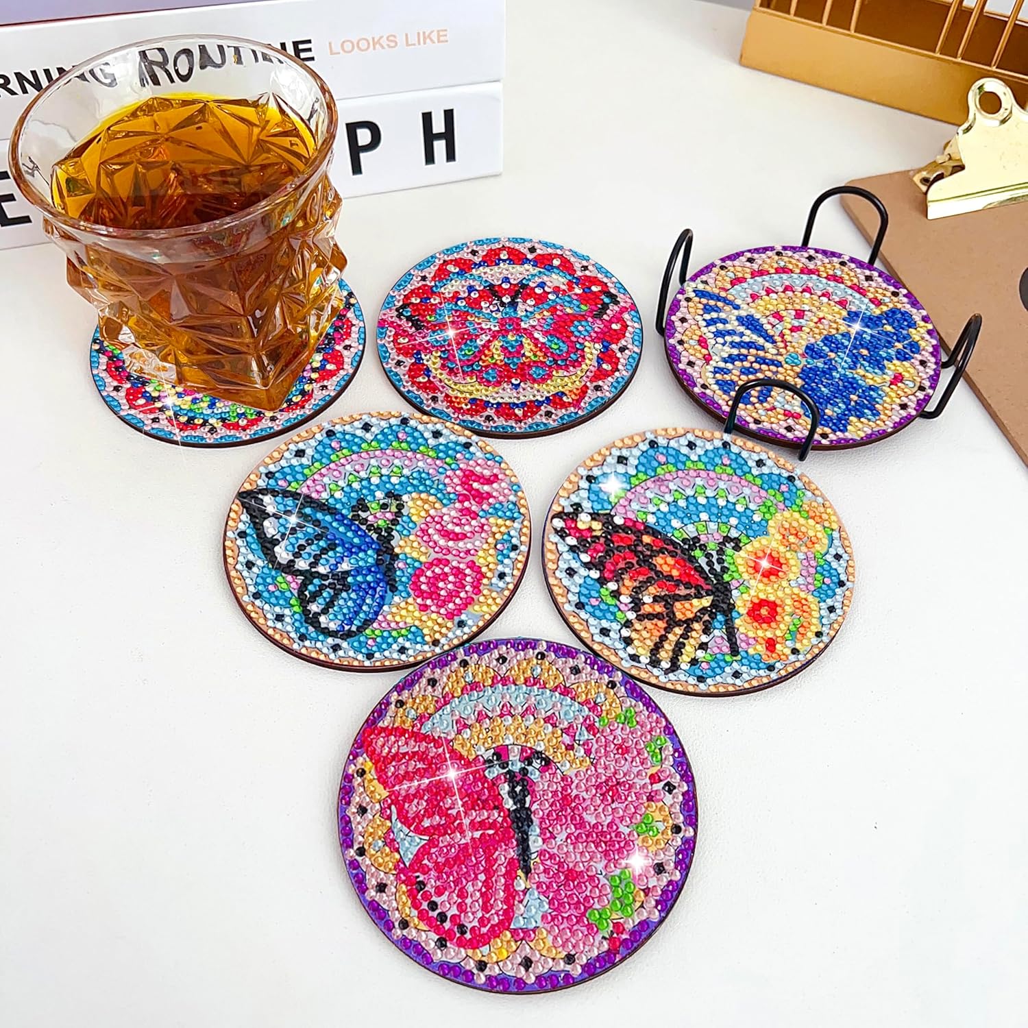 Butterfly Diamond Painting Art Coasters with Holder Package Included: -Diamond Painting Coaster x 6 -Coaster Holder x 1 -Various Colorful Diamond x 17 -Clay Glue x 1 -Diamond Pen x 1 -Diamond Tray x 1 -Customized Box x 1 Unique and meaningful gift in Christmas, Farewell, Birthday, Thanksgiving, Housewarming, New Year, Wedding And Engagement, Mothers Day, Easter, Thank You And Appreciation, Back To School, Womens Day, Valentines Day etc special holiday or moments.