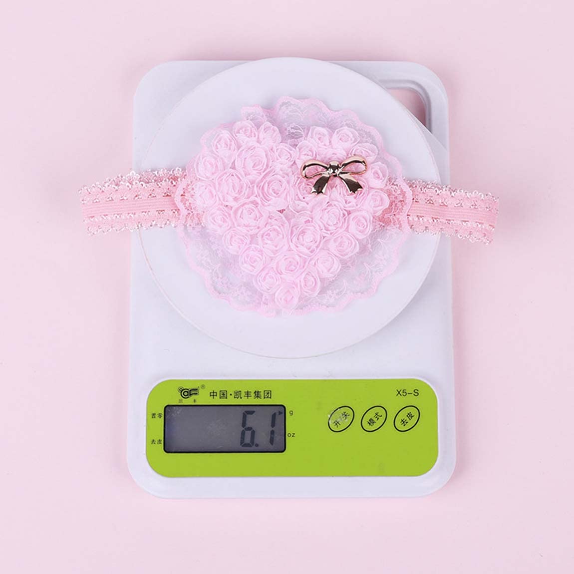 Material: elastic band, chiffon flower, handmade rose flower, lace, satin and other ornaments.