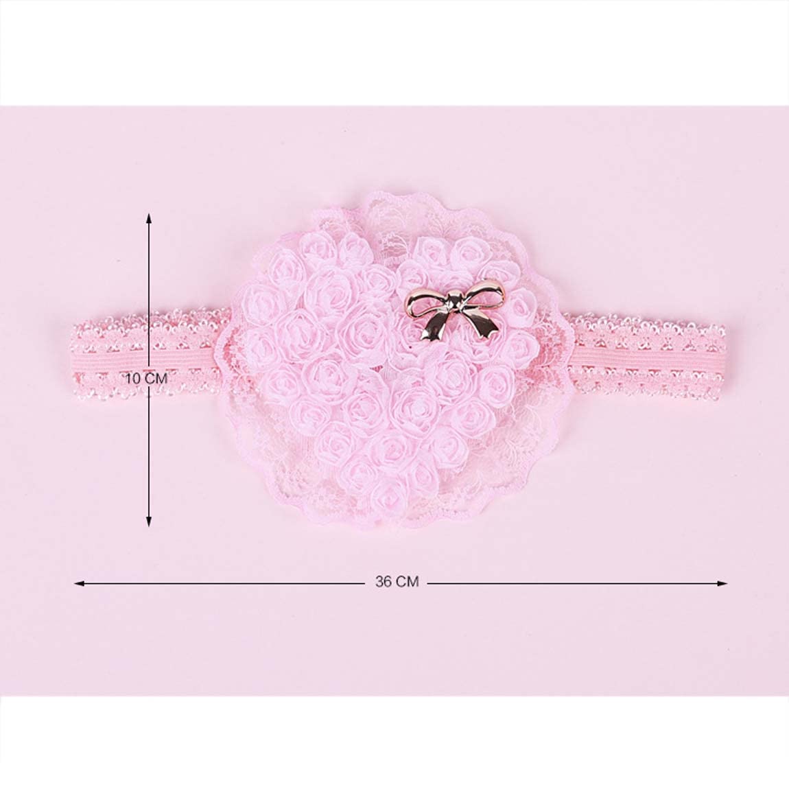 Baby Girls Rose Flower Headband was made of high quality elastic band, chiffon flower, handmade rose flower, lace, satin and other ornaments.
