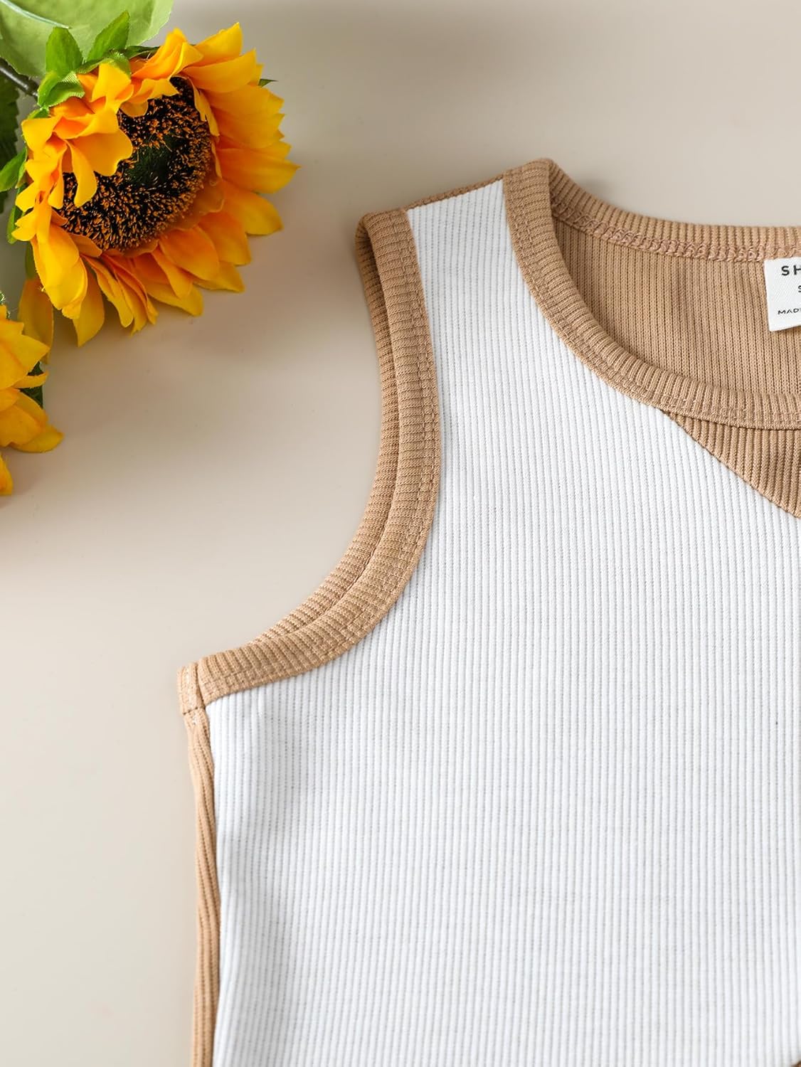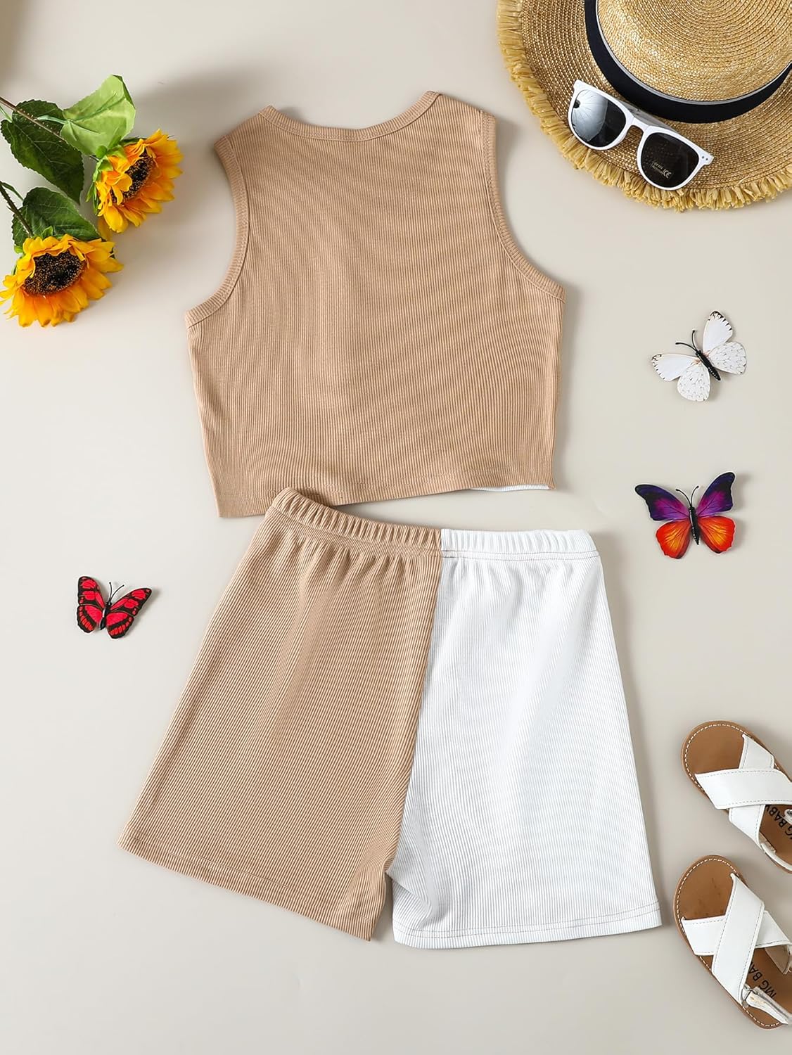 Verdusa Girl’s 2 Piece Workout Outfit Colorblock Crop Tank Top and Short Sets