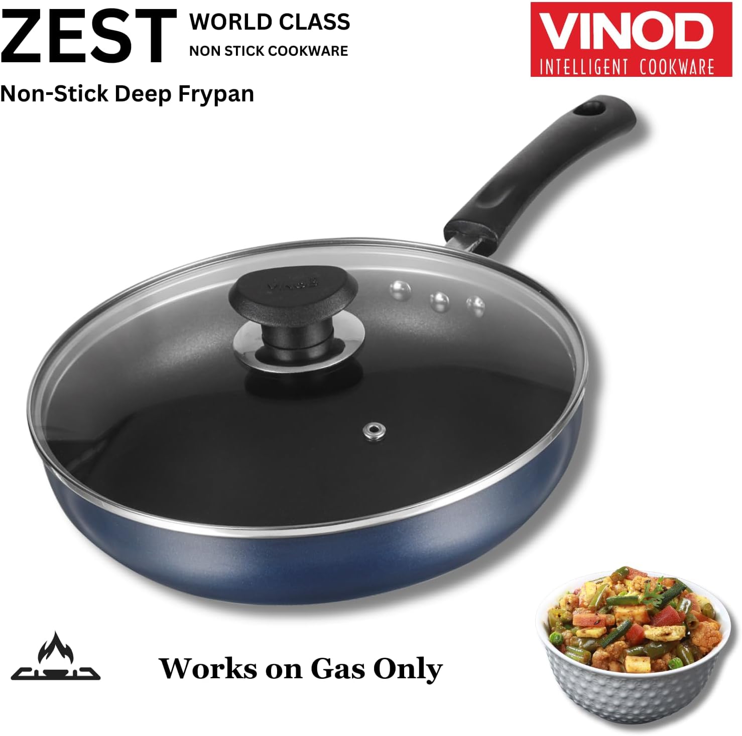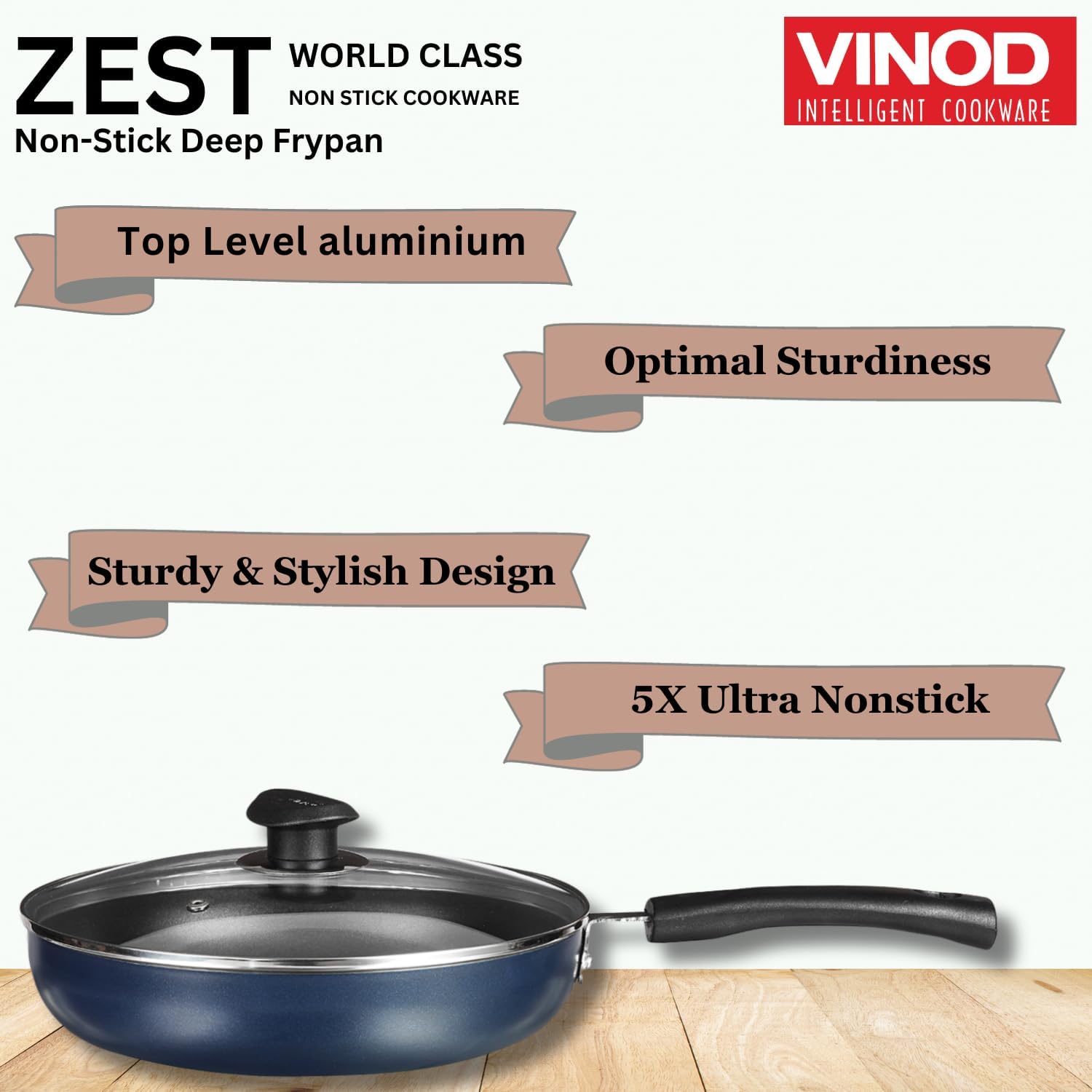 Vinod Cookware Deep Fry Pan With Lid Blue/Black 22Cm, Blue/Black