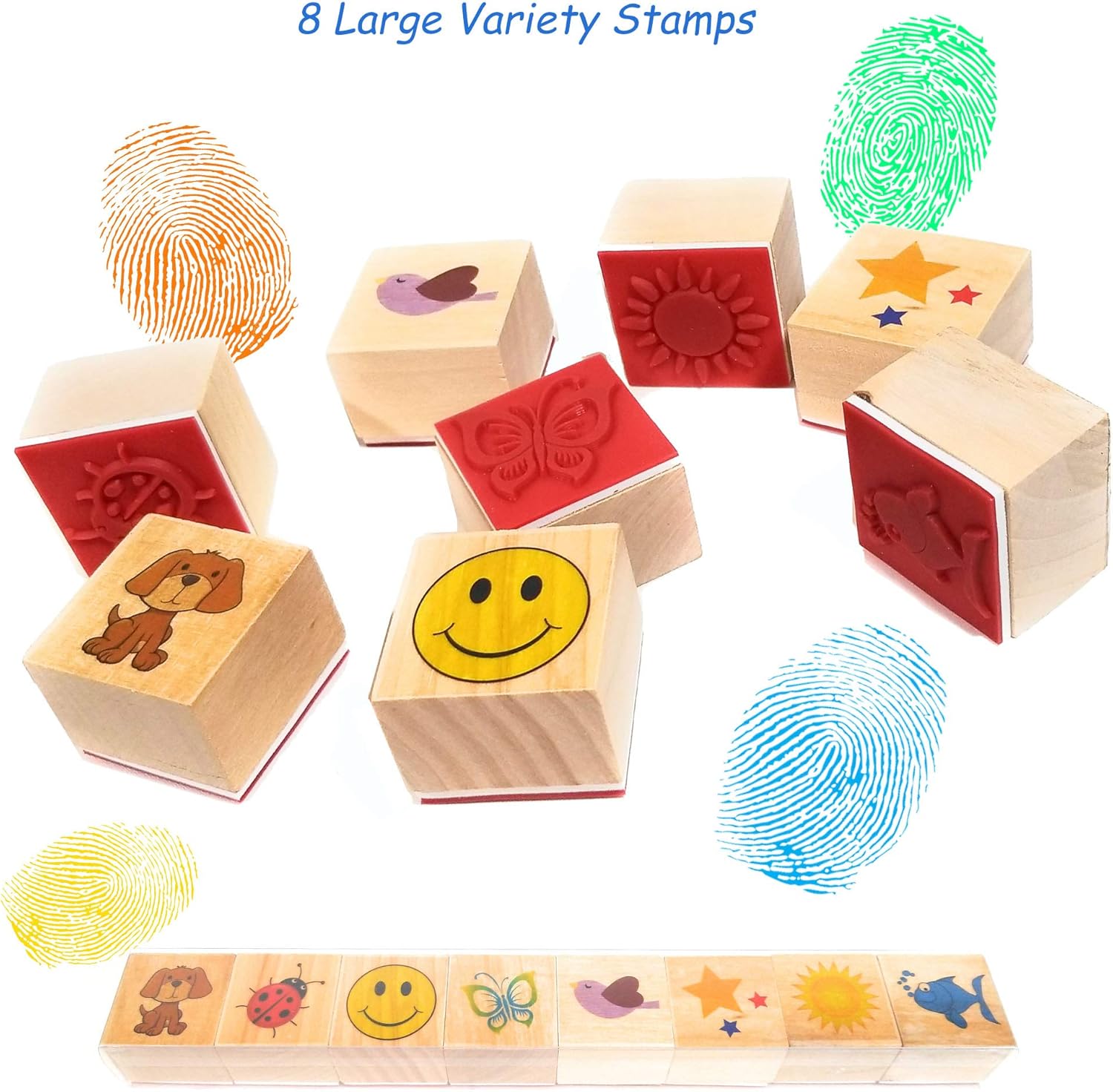 🙂 8 LARGE STAMPS WOODEN SET – Why buy separate stamps? We have it included in this package! With different styles for your kids to start with and large easy to grip wooden blocks, they can immediately begin creating their artwork.