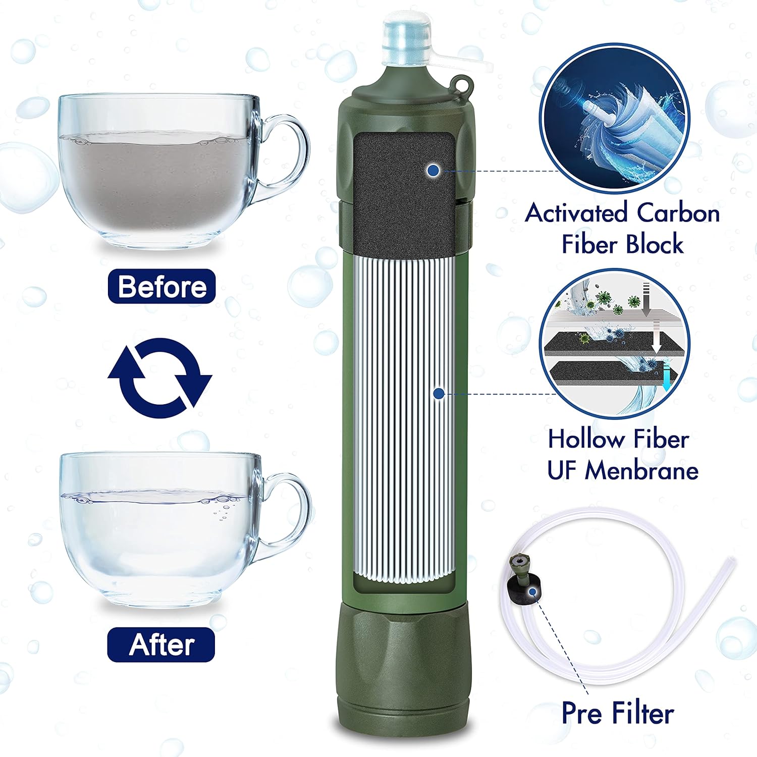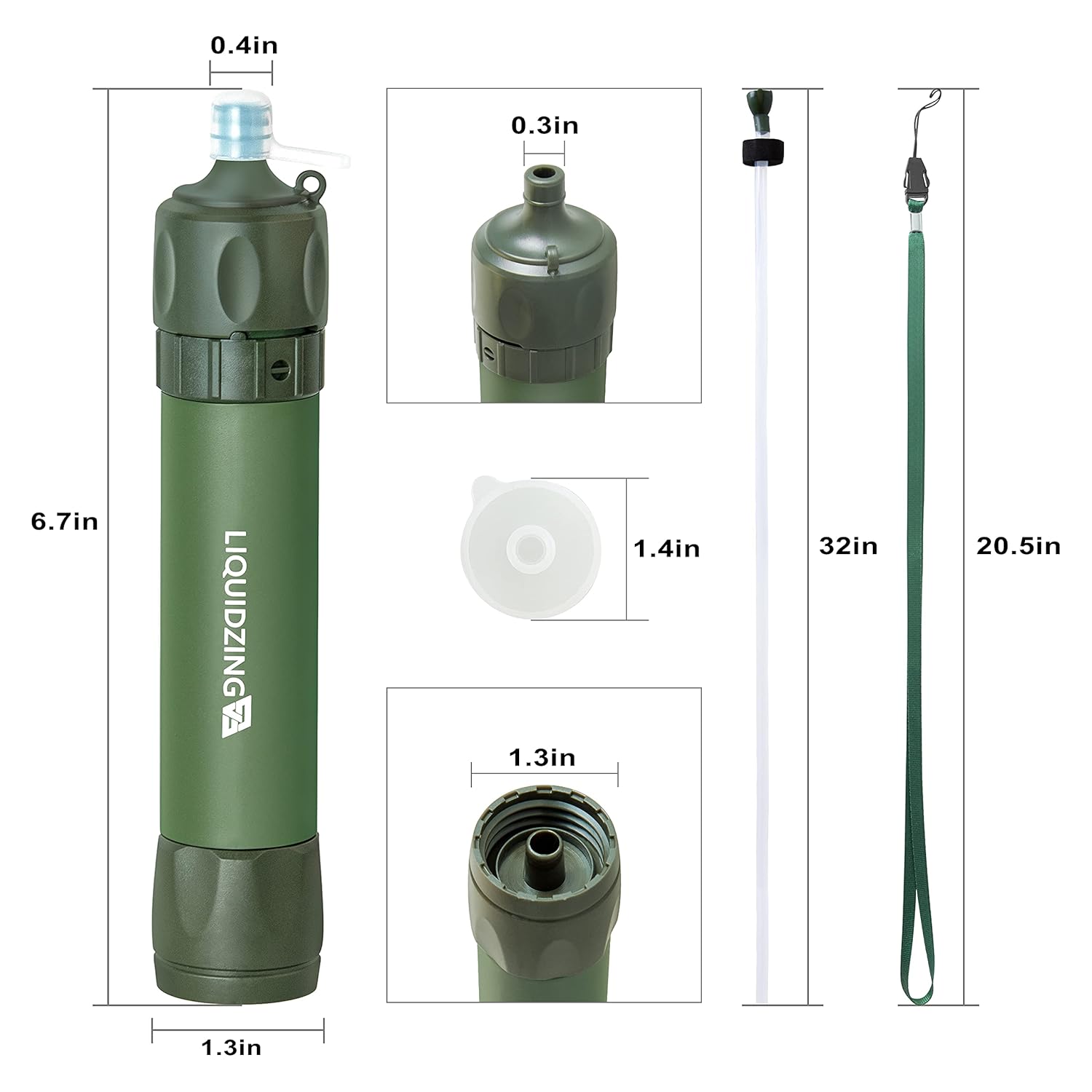 Rigorous Testing: All claims are verified with laboratories using standard testing protocols set by the US EPA for water purifiers. Unique Look: Portable water filter straw measures 6.7 x 1.3″” in size, weighs just 1.92 ounces/0.12 lb and is equipped with an exquisite lanyard, making it life easy to take when outdoor camping, hiking, mountain climbing, hunting, trekking, backpacking, biking, boating. Cool green color and wild look must attract the eyes.