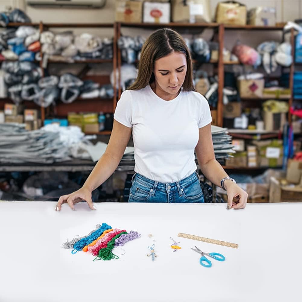 Craft Kit: Unique DIY activity kit for children ages 6-8, 8-12 with braided thread, round wooden beads and threading device to make 10 keychain dolls. Make and share your keychain with friends and family.