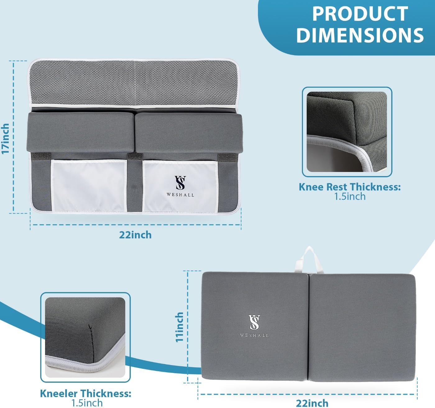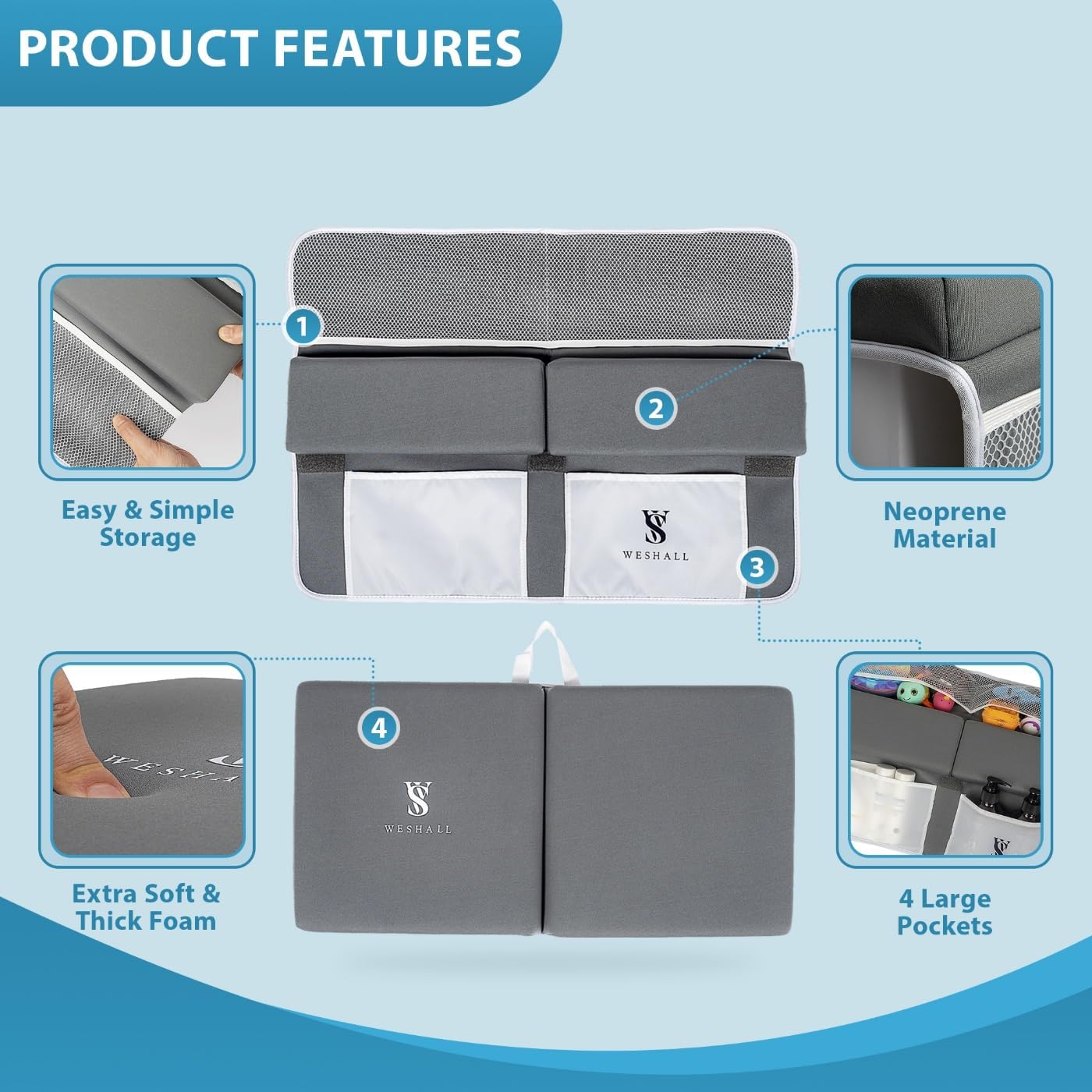 WESHALL Bath Kneeler and Elbow Rest Pad – Baby Bath Mat with Organizer to Support Back, Knee and Arm, Quick Dry & Machine Washable
