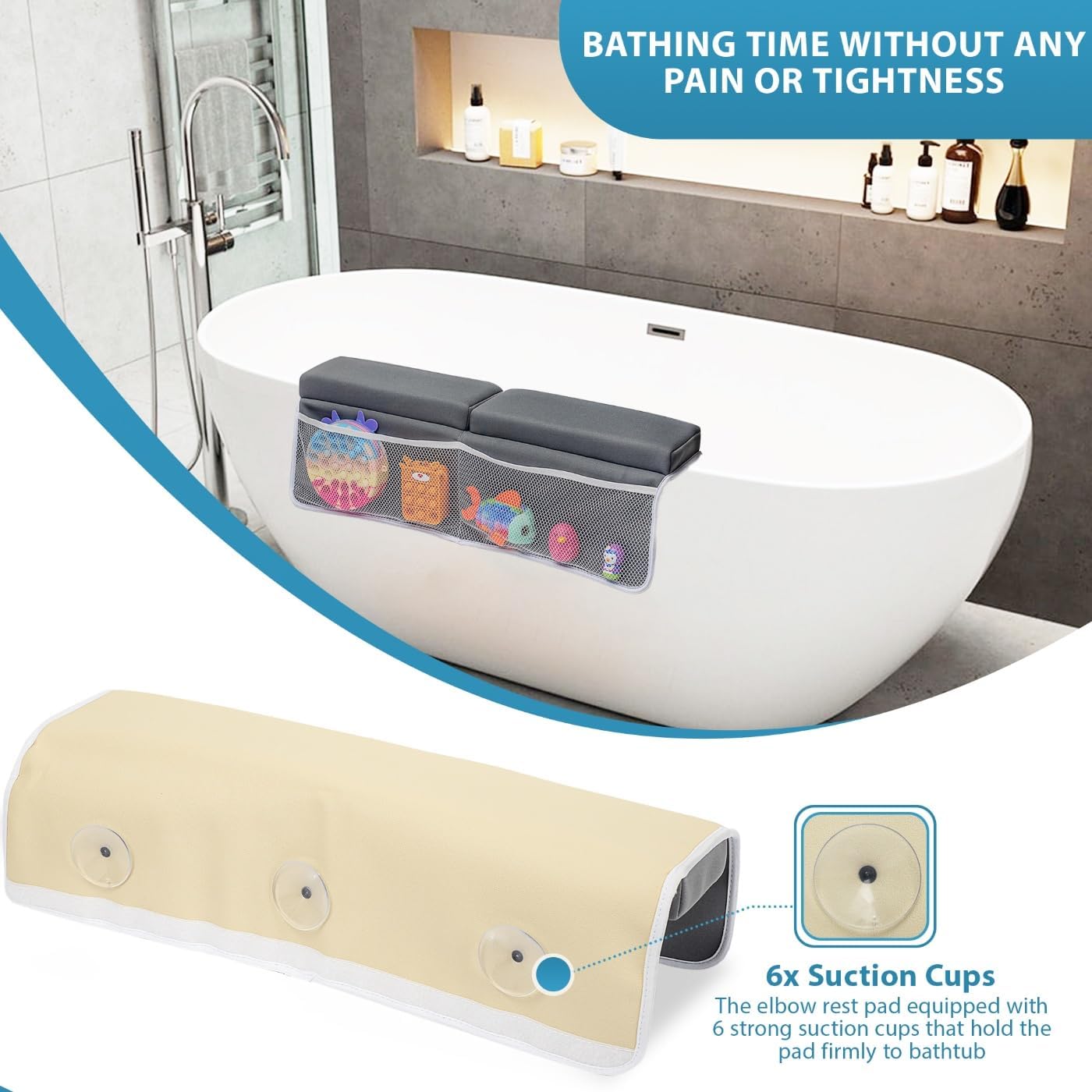 Non-slip Design Ensures Safety – The elbow rest pad features 6 strong suction cups to securely hold it in place on the bathtub and prevent slipping. It also has a non-slip rubber bottom that grips the floor, ensuring the bath kneeler remains stable, even if your baby splashes soapy water.