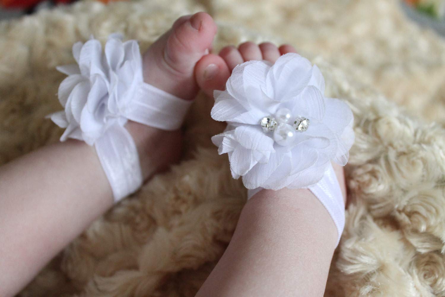 White Baby Girl Foot Flower + Headband(LDZ24) (A)