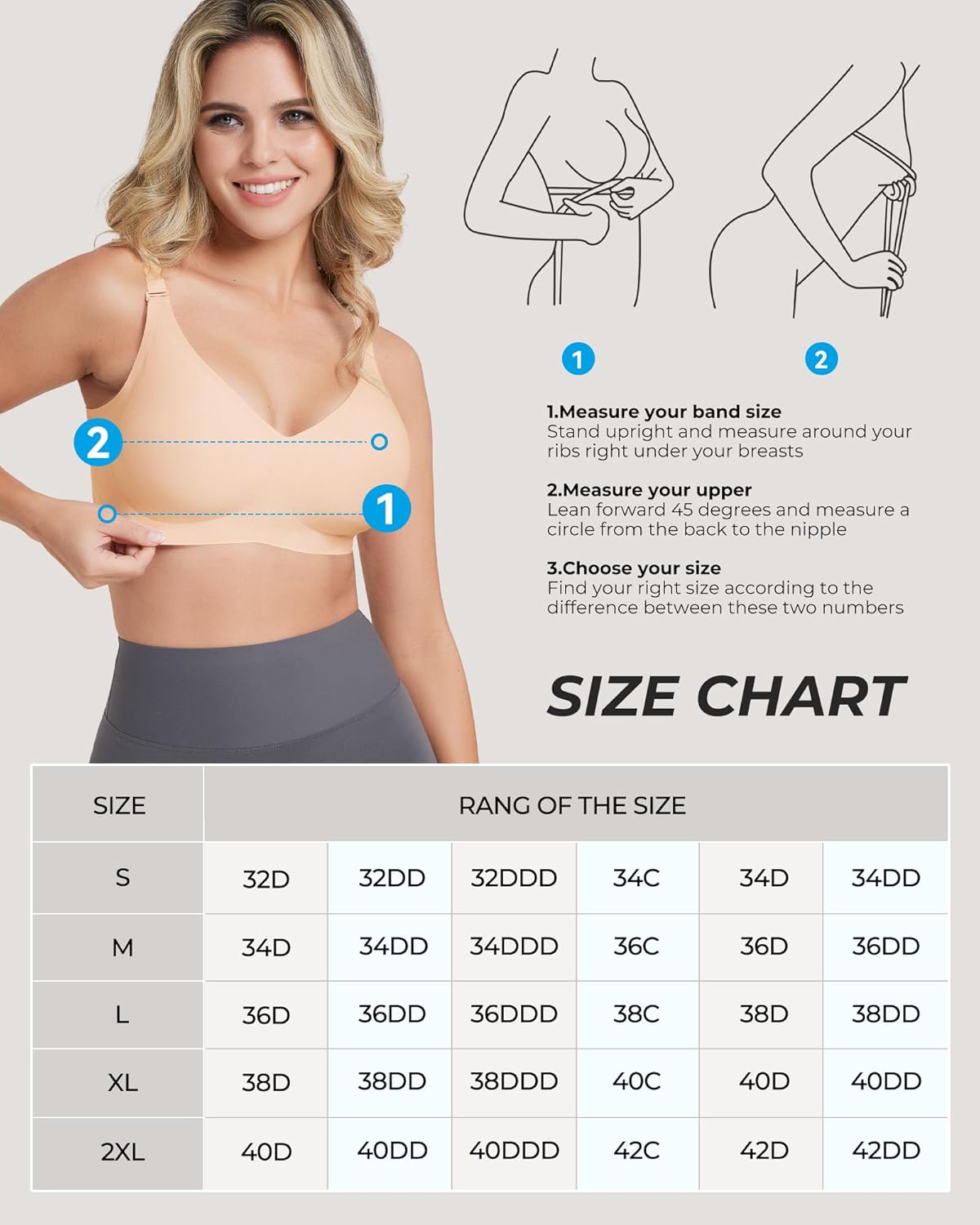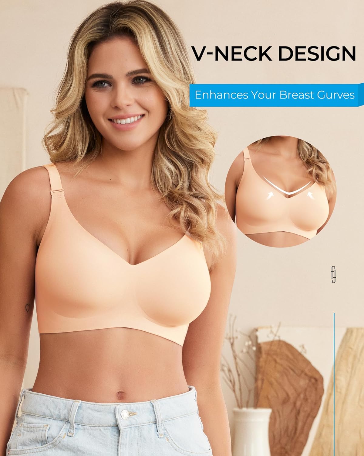 Wireless Bras for Women No Underwire, Seamless Bras Smooth Soft V Neck Full Coverage Comfort Bra with Extender