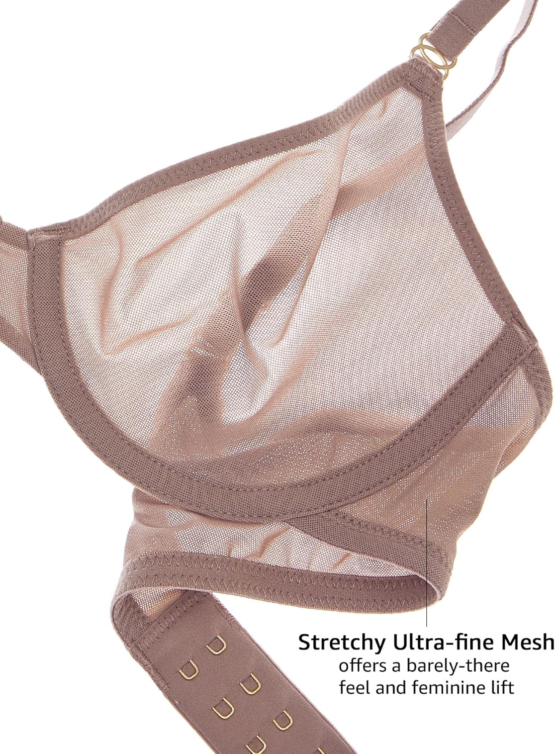 Women’s Cosnufy Sheer Balconette Bra Demi Unlined Plunge Mesh See Through Sexy Bras Underwire