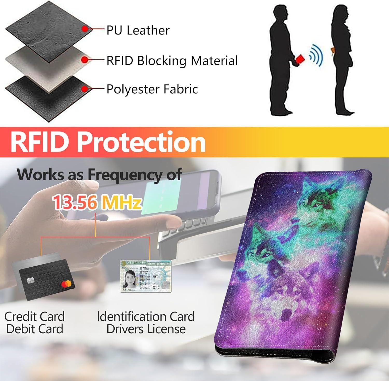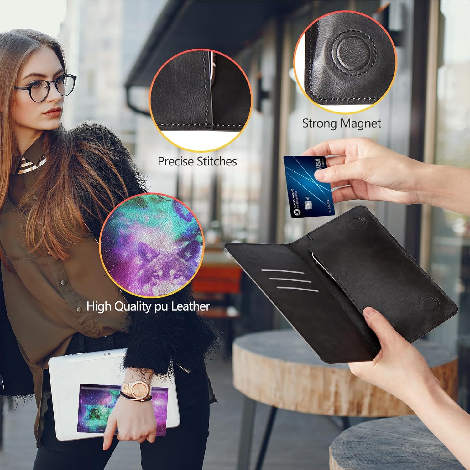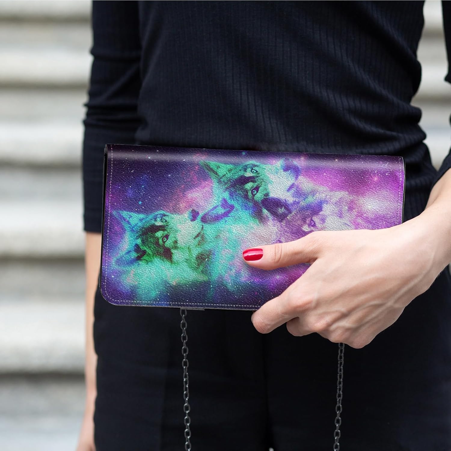 Women’s Wallet Leather Ladies Wallet with RFID Blocking Phone Purse & Credit Card Holder, Cell Phone Purse for Women Girls Cellphone Bag, Galaxy Three Wolves