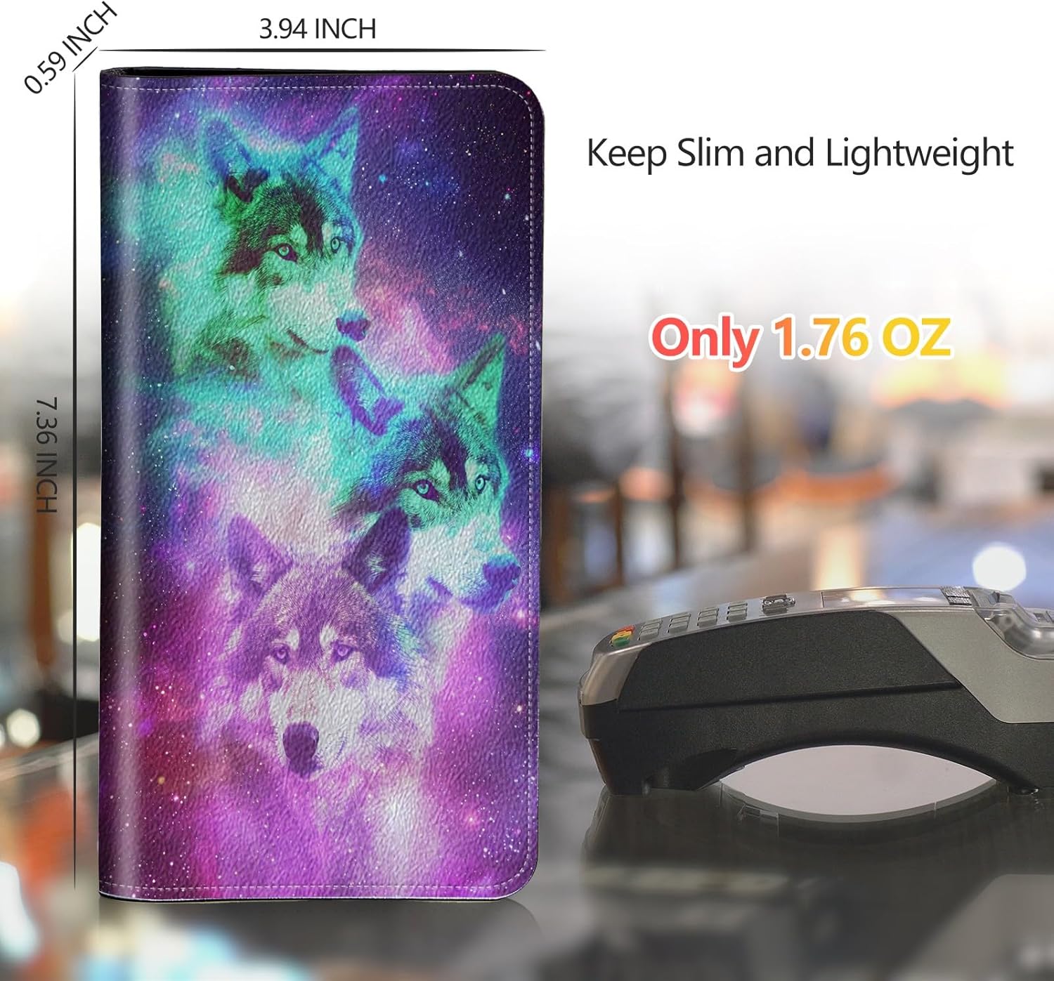 Women’s Wallet Leather Ladies Wallet with RFID Blocking Phone Purse & Credit Card Holder, Cell Phone Purse for Women Girls Cellphone Bag, Galaxy Three Wolves