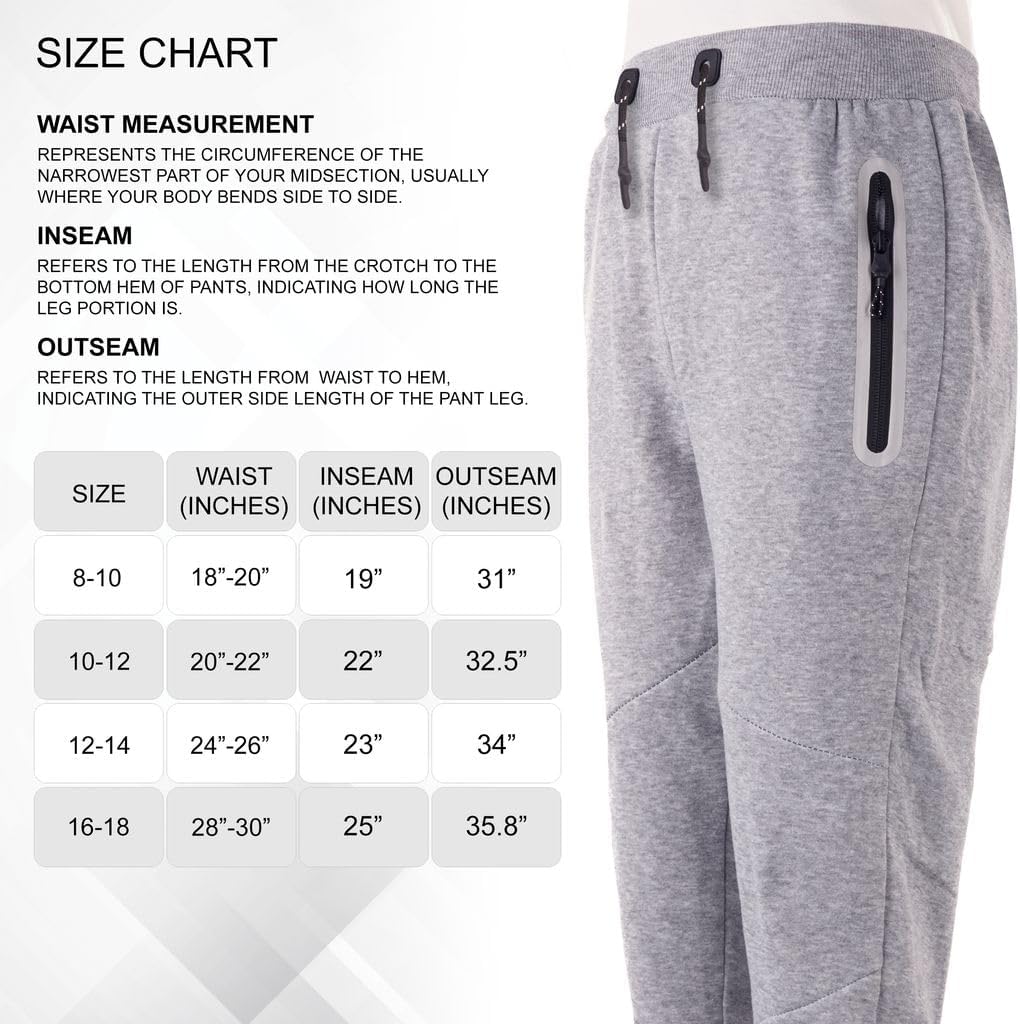 XS Apparel Fleece Boys Joggers 3 Pack: Boys Athletic Pants, Active Sweatpants for Boys Joggers Workout Kids Clothes (8-20)