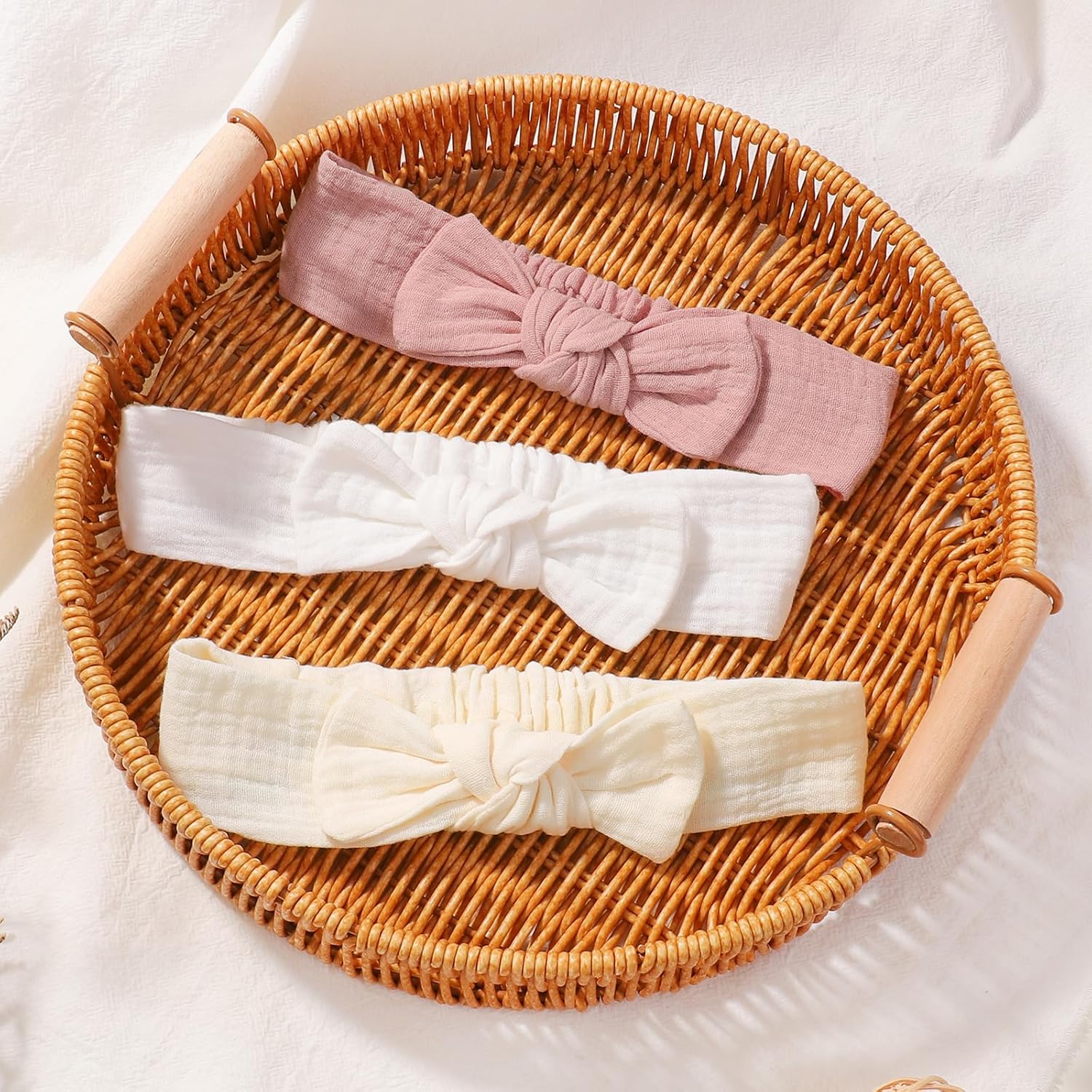 Package Includes: It contains 3 different color soft cotton headbands for your baby girls, you can quickly find a different color to match different clothes. Pick one of our infant headbands every day to make your little one exquisite daily.