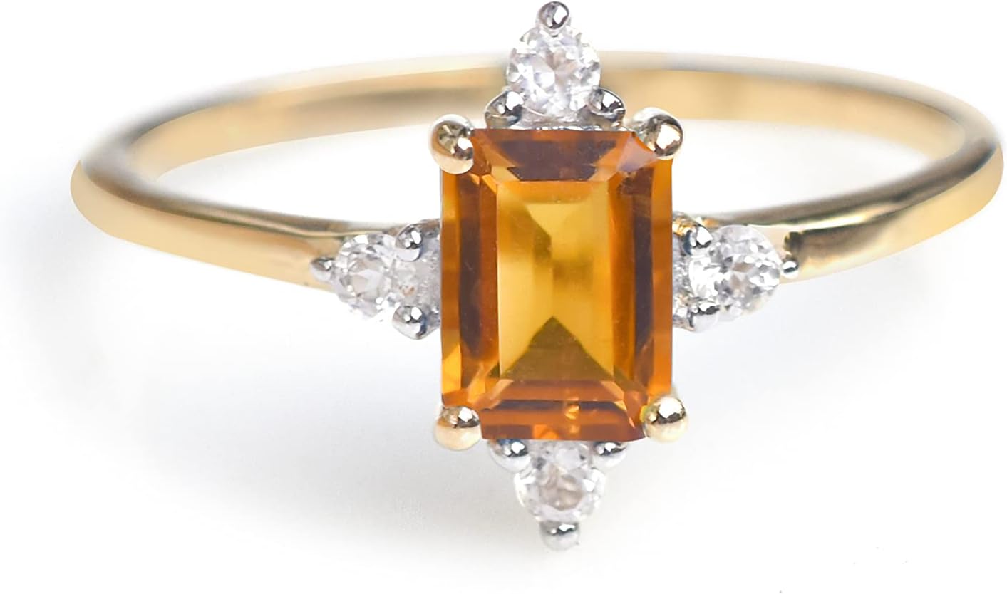 YoTreasure 1.37 Ct. Healing Citrine White Topaz Solid 10K Yellow Gold Engagement Ring