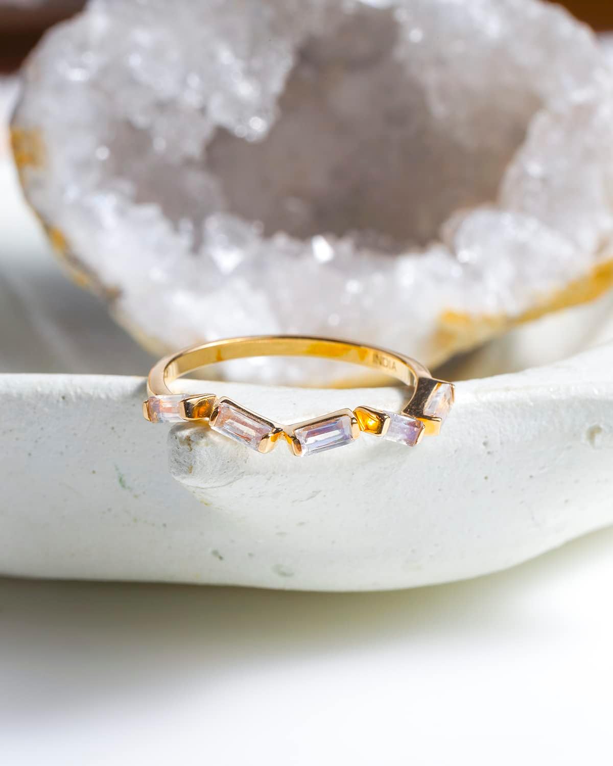 Be the first to review “YoTreasure Moonstone London Blue Topaz Pink Tourmaline 14K Yellow Gold Wavy Eternity Ring Jewelry”