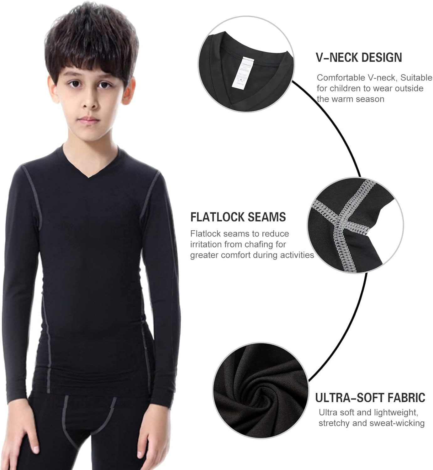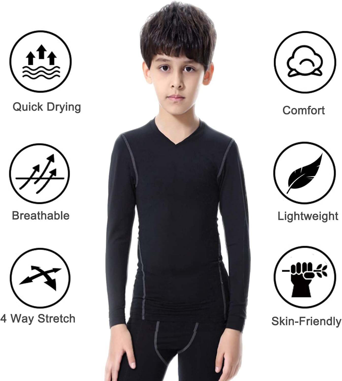 Youth Boys Compression Shirt Long Sleeve Athletic Football Undershirt Baseball Sun Shirts Quick Dry Sports Baselayer