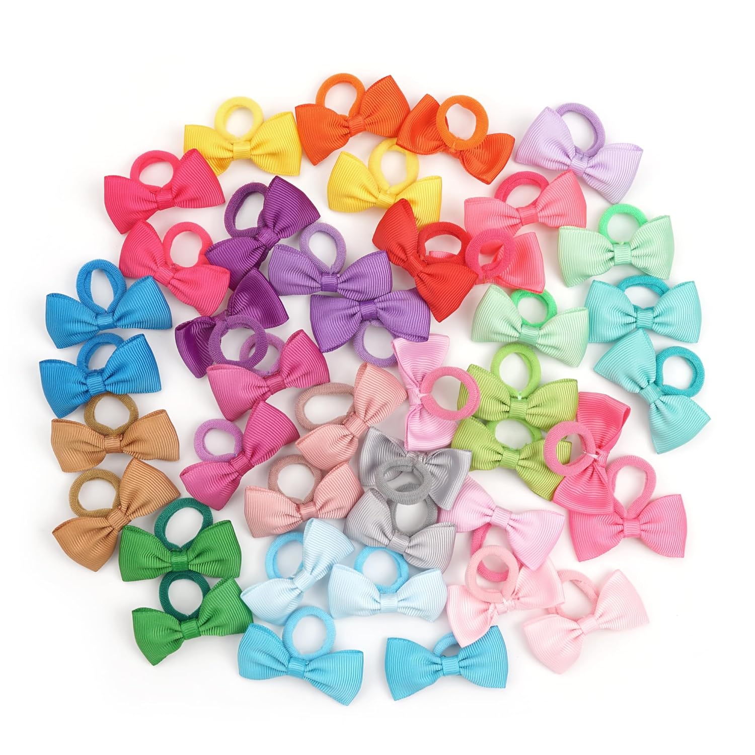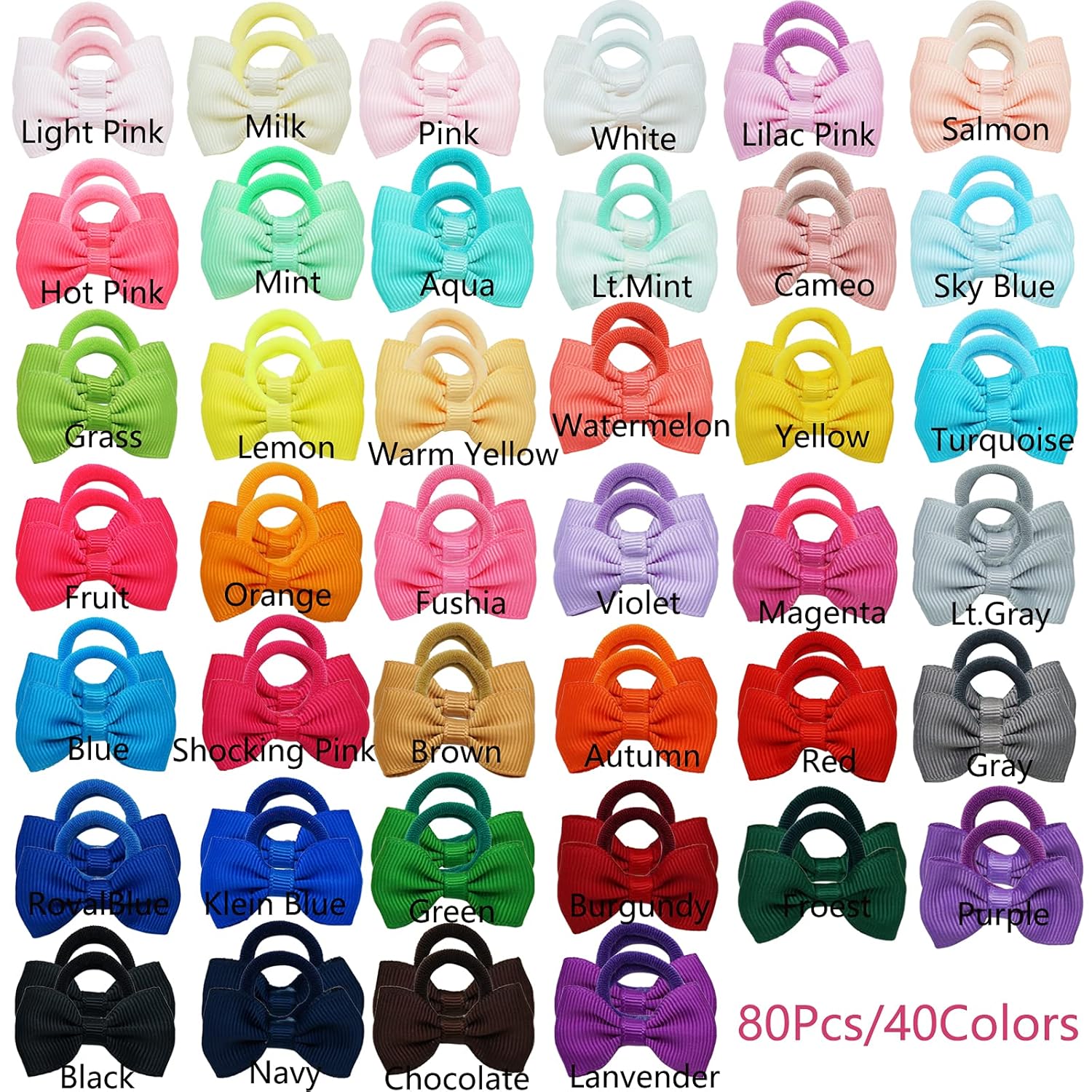 Yxiang 80PCS Baby Hair Ties, 2 Inch Tiny Hair Bows Elastic Ponytail Holder Boutique Small Hair Band for Baby Girl Toddler Kid In Pairs (40Colors)