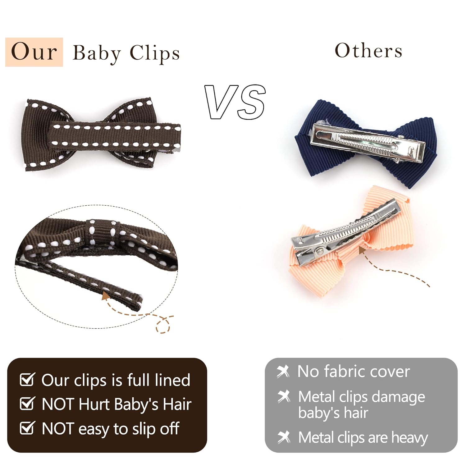 【Perfect Size for Little Girls】The 2-inch small bows, cute and light, are a suitable size specially designed for babies. If your baby doesn’t like wearing a headband, you should try these clips to keep her hair away from her eyes. It can also decorate the baby’s braids and ponytails.